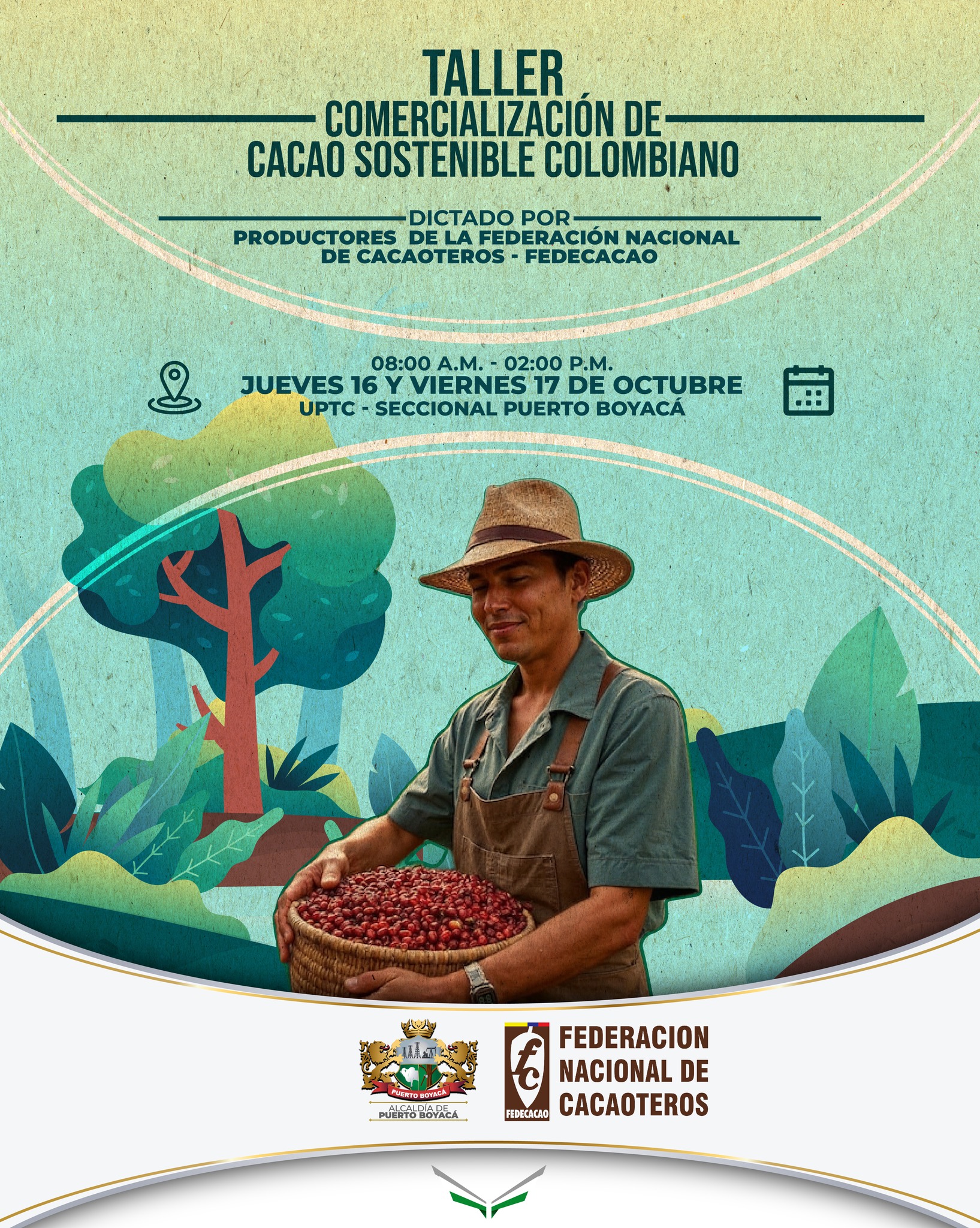 Este jueves y viernes te esperamos en el Taller de Comercialización de Cacao Sostenible Colombiano, un espacio diseñado para fortalecer tus conocimientos, abrir nuevas oportunidades de mercado y avanzar hacia una producción más responsable y rentable.